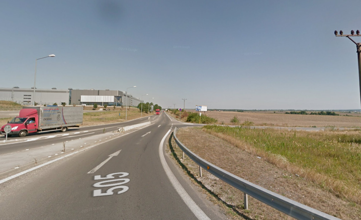 Kruháč pri VW odbočka vpravo cca 15 metrov za prvým veľkým kruháčom